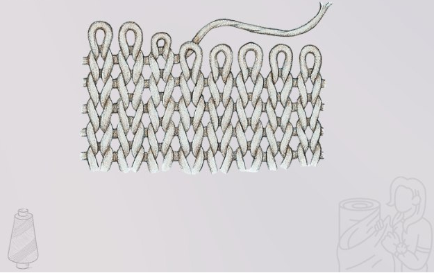 Nếu cắt một miếng vải sau khi nhặt sạch các đầu sợi, ta bắt một mối nối sợi, bắt đầu lực kéo với một lực căng vừa phải sẽ xảy ra hiện tượng các vòng sợi bị kéo tuột ra khỏi vải.