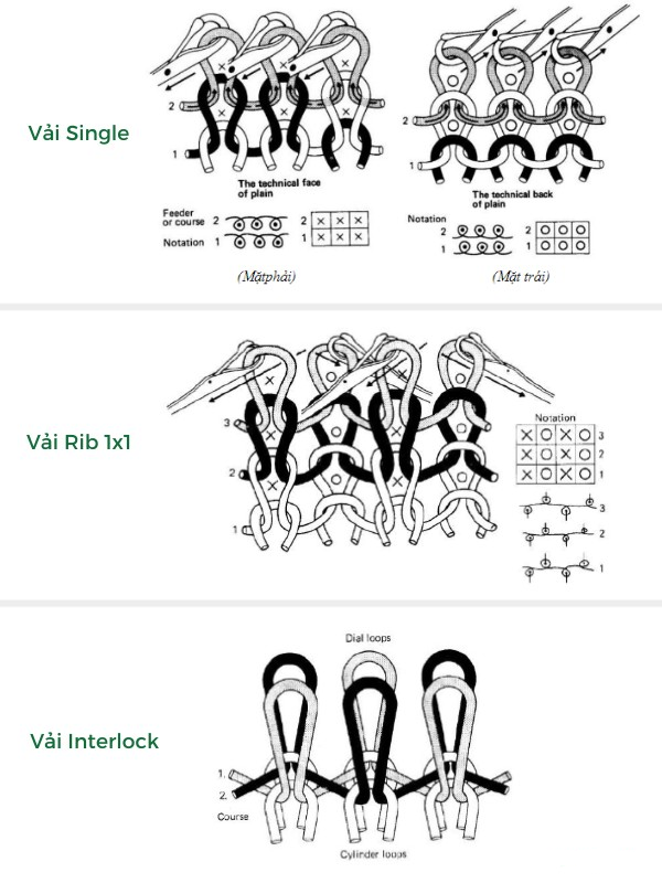 Các loại vải dệt kim đan ngang phổ biến bao gồm: